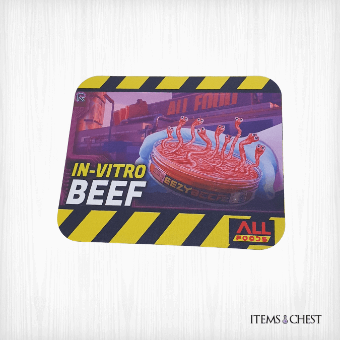 Alfombrilla para ratón con publicidad de All foods del mundo de Cyberpunk 2077.
