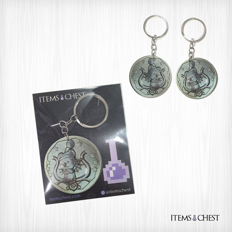 Llavero redondo de acrílico de Final Fantasy VII con diseño de medalla Moguri. Ligero y resistente, ideal para llevar tus llaves con estilo. Perfecto para cualquier fan de este clásico del RPG.